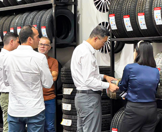 A visita incluiu encontros em algumas lojas parceiras da Rede Mais Pneus, rede responsável pela comercialização dos pneus Chengshan no Brasil.